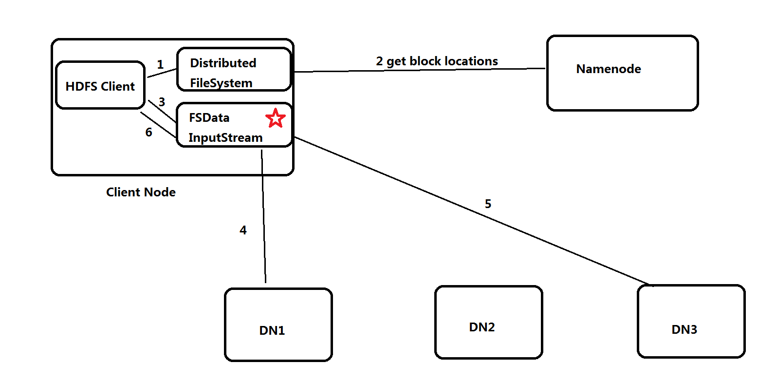(感觉就是连续的数据流,对于客户端操作是透明无感知的) - Client调用FSDataInputStream.close()方法,关闭输入流。