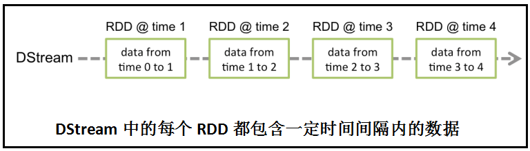 在内部,DStream由一系列连续的RDD表示,如下图: